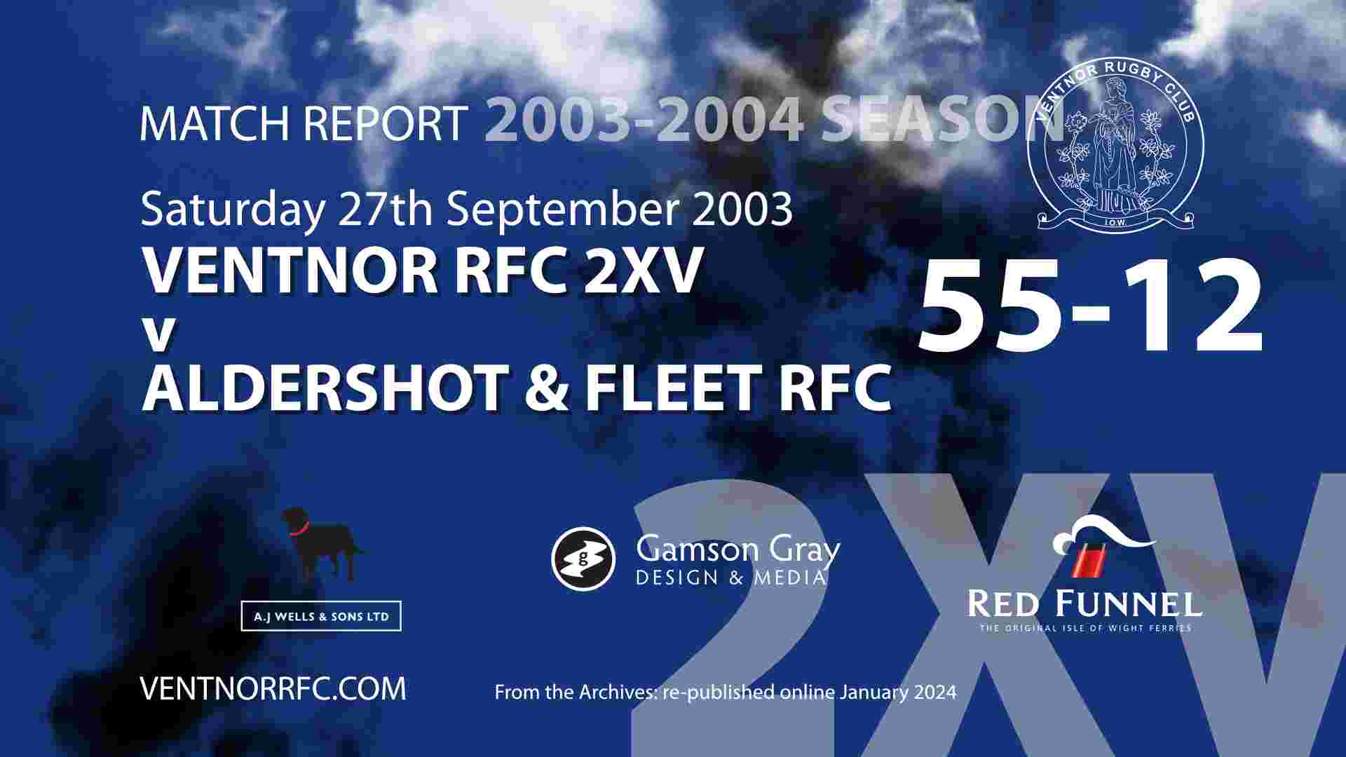 From the VRFC archives Ventnor RFC 2XV 55-12 Aldershot and Fleet RFC match report September 2003